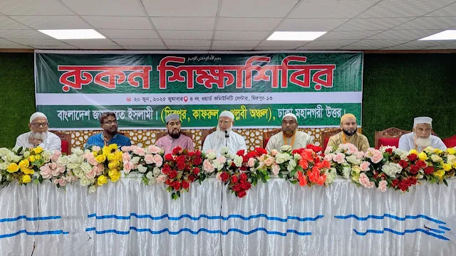তিনি আজ বিকালে রাজধানীর মিরপুর-১৩ এর ৪ নং ওয়ার্ড কমিউনিটি সেন্টারে মিরপুর, পল্লবী ও কাফরুল জোন জামায়াত যৌথ আয়োজিত রুকন শিক্ষাশিবির’২০২৫-এ প্রধান অতিথির বক্তব্যে এসব কথা বলেন। মহানগরীর সহকারী সেক্রেটারি মুহাম্মদ মাহফুজুর রহমানের পরিচালনায় শিক্ষাশিবিরে বিষয়ভিত্তিক আলোচনা পেশ করেন সদ্য কারামুক্ত কেন্দ্রীয় নির্বাহী পরিষদ সদস্য এটিএম আজহারুল ইসলাম, কেন্দ্রীয় নির্বাহী পরিষদ সদস্য ও ঢাকা মহানগরী উত্তরের আমীর মোহাম্মদ সেলিম উদ্দিন, কেন্দ্রীয় মজলিসে শূরা সদস্য ও ঢাকা মহানগরী উত্তরের সহকারী সেক্রেটারী ডা. ফখরুদ্দীন মানিক ও ইয়াছিন আরাফাত ও ঢাকা মহানগরী উত্তরের কর্মপরিষদ সদস্য মুফতি ড. মাওলানা আবুল কালাম আযাদ বাশার প্রমূখ।